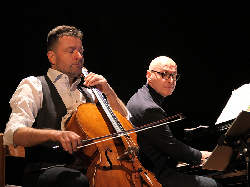 Emerge allora un perfetto equilibrio, anche decibelico, tra pianoforte e violoncello, in un'attenzione che deriva da quel sentirsi l'un l'altro che dovrebbe essere sempre nelle corde del camerista perfetto. Un'esibizione questa del 12 marzo in cui due valentissimi musicisti, non dimentichi della fondamentale importanza della cultura, hanno offerto al pubblico un'interpretazione particolarmente bilanciata, rigorosa ma allo stesso tempo empatica. Evidente l'intento di non auto relegarsi semplicemente nell'accademia, ma produrre un'esecuzione contrassegnata dalla freschezza del momento, dove anche la bellezza del suono ha pieno diritto di cittadinanza (anzi deve averlo), scevra da intellettualismi e mirata alla sostanza delle emozioni. Al termine del concerto Massimo Giuseppe Bianchi e Mattia Zappa regalano un "encore" al pubblico plaudente, il Largo dalla Sonata in sol minore per violoncello e pianoforte Op. 65 di Chopin. Un modo tenero e riflessivo per lasciarsi ancora andare tra le braccia della musica in quest'incantevole serata di metà marzo.