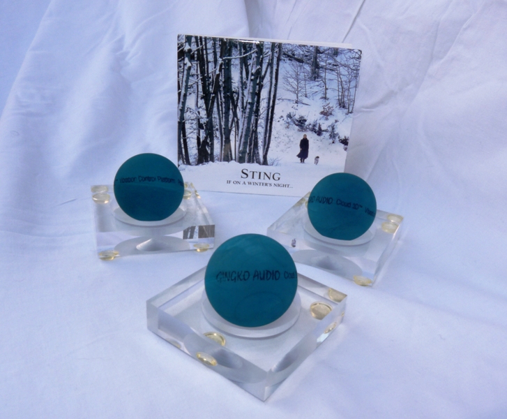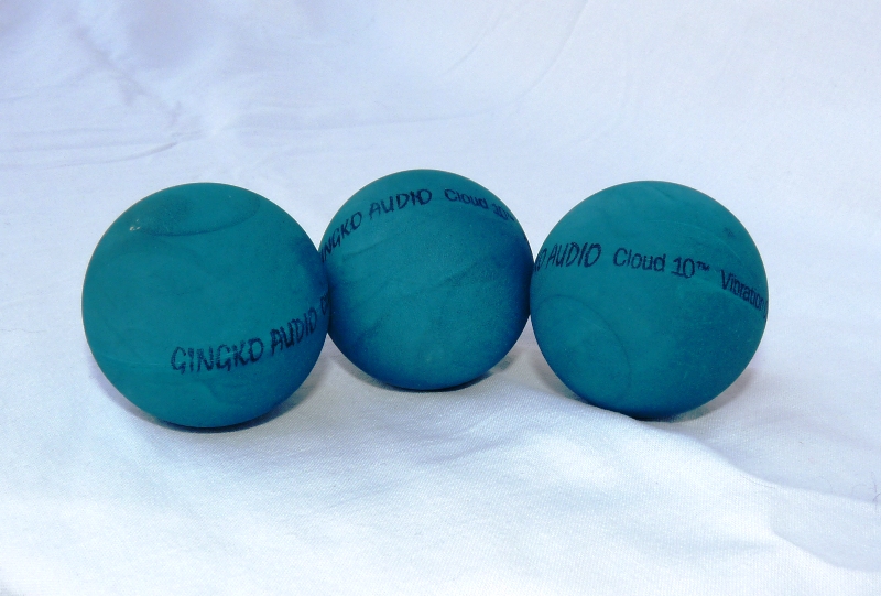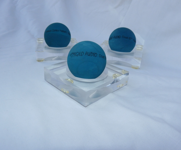Il sistema Mini-Clouds 10, oggetto della nostra prova, è il sistema "entry level" di controllo delle vibrazioni nella gamma dei prodotti Gingko Audio, è disponibile in un set di tre basi di acrilico nero e tre "palle". Il set a mia disposizione invece era fornito di basette in acrilico trasparente. Le palline di gomma svolgono due funzioni molto importanti: lavorano efficacemente come ammortizzatori, assorbendo le vibrazioni indesiderate e sono utilizzate per bilanciare il carico non uniforme di alcuni apparecchi come amplificatori o giradischi, utility quest'ultima molto interessante se pensiamo che il bilanciamento influisce sulle modalità di assorbimento e, di conseguenza, anche sui risultati sonici.
