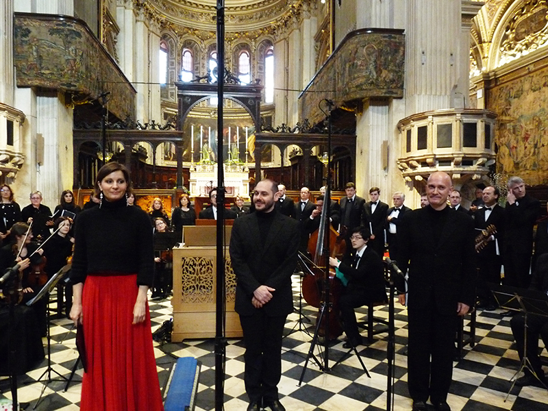 Da appassionato di musica di lungo corso, ho riscontrato nella loro interpretazione una grande pertinenza stilistica, l'approccio assolutamente naturale al linguaggio musicale barocco, davvero da standing ovation. Sui loro volti la gioia di fare musica e un pizzico d'orgoglio per farsi portatori di un messaggio etico così alto. Si dice che la musica "vecchia" non appassioni se non una ristretta nicchia d’impallinati amatori, che giovani e meno giovani non la frequentino e la rispettino come si conviene. A questi interrogativi non saprei dare una risposta precisa, mi limito ad annotare, con parole e immagini, di come la Basilica fosse affollata di gente di ogni età. Persone che hanno rinunciato a una distensiva passeggiata nel clima assolato di una stupenda Bergamo primaverile per assistere a questo evento.