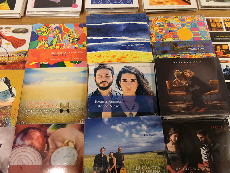 Al centro dell'immagine (e non per caso) c'è il bellissimo album Maletiempu di Rachele Andrioli & Rocco Nigro, terzo lavoro discografico del duo salentino. Un'avvincente avventura proposta dalla fisarmonica e voce, dove ci affascinano una ninna nanna diffusa tra Basilicata e Puglia, un canto dalla Corsica ritradotto in salentino, un brano campano, uno siciliano e una godibilissima "Tarantella del Gargano". In chiusura troviamo "Cosa sono le nuvole", il suo testo è tratto da uno scritto da Pasolini e cantato in origine da Domenico Modugno.