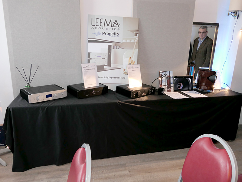 Disposte su un tavolo alla sinistra del Fyne F1-5 c'erano tre elettroniche Leema Audio della Serie Constellation: l'amplificatore integrato Tucana II, l'amplificatore finale di potenza Hydra II e il Libra, un DAC di caratura HiEnd con Bluetooth e amplificatore per cuffie di alta qualità.