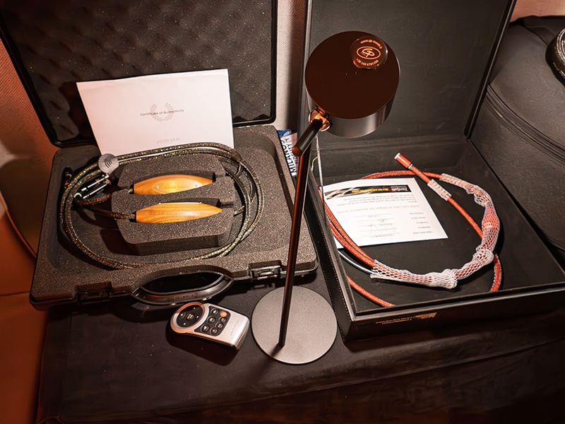 Prese di alimentazione, connettori vari per diffusori Viborg, morsetti stabilizzatori per giradischi con livella di precisione integrata, connettori per diffusori WBT e Viablue.