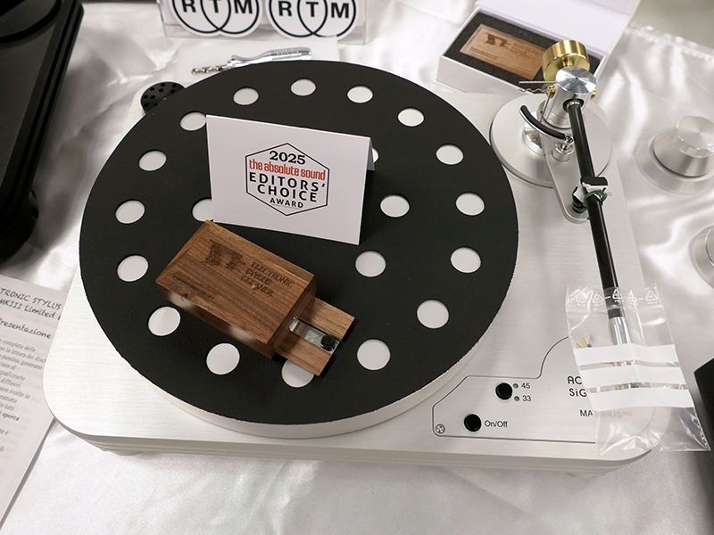 Si allarga quest'anno l'azienda di Domagnano, passando da una piccola saletta del primo piano a un grande spazio, dove ha esposto, oltre alla macchina lavadischi Audio Desk e diversi accessori per i vinilisti, una rassegna di ben otto giradischi Acoustic Signature, i quali sono tutti coperti da una garanzia di ben quindici anni e i bracci cinque anni.