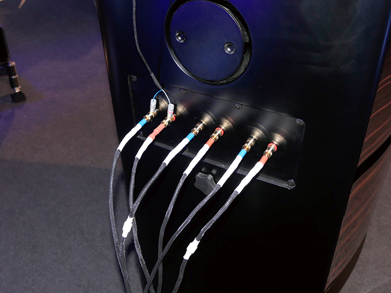La morsettiera posteriore. Offre la possibilità della triamplificazione.