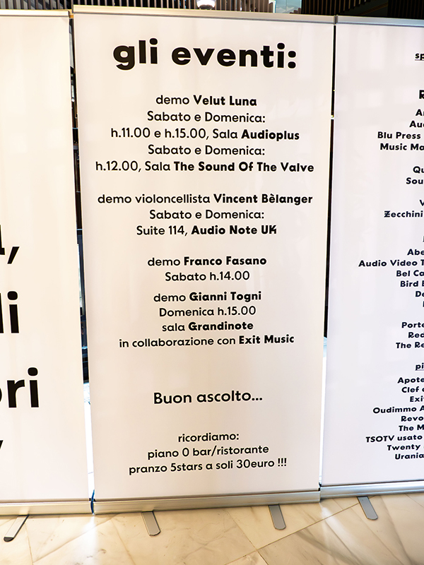Il nome dei rispettivi album è "...e in quel momento, entrando..." e "Mi va di cantarle così" . Ma gli eventi musicali non finiscono qui: in anteprima nazionale il violoncellista Vincent Bélanger ha allietato chi visitava la Suite 114 di Audio Note UK con frequenti esibizioni. A queste si è aggiunto l'ascolto di brani da lui suonati e riprodotti dall'impianto Audio Note.
