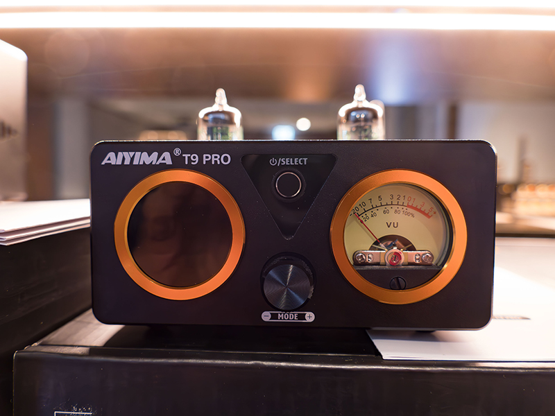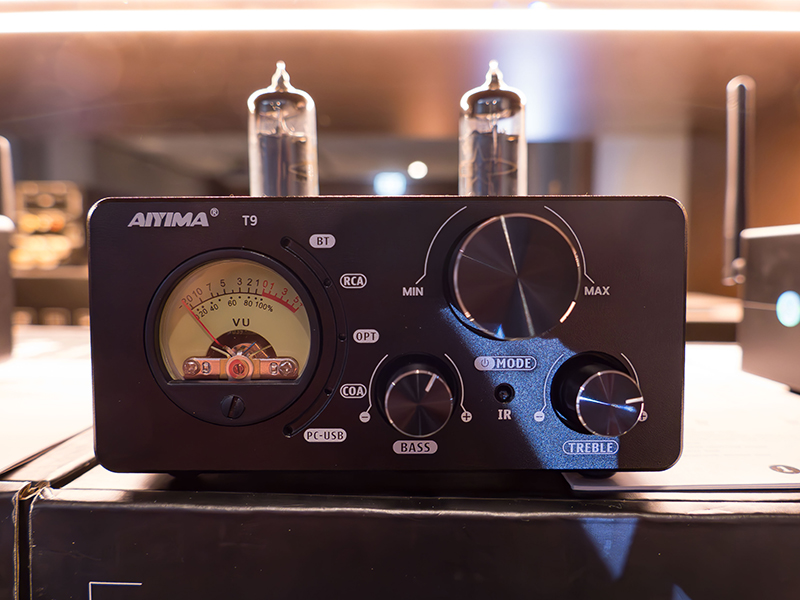 L'Aiyima Audio T9 è un amplificatore integrato ibrido, con stadio di preamplificazione a valvole 6K4 e amplificazione finale in Classe D con chip TPA3250. Molto intrigante il suo aspetto retrò con il VUmeter in giallo.