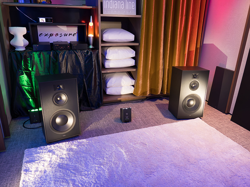 L'Indiana Line, da sempre sinonimo di ottimo rapporto qualità/prezzo, è un marchio fondato negli anni '70, nato dall'importazione e assemblaggio di diffusori americani Utah (da cui il nome della nuova serie). Nel 2006 fu acquisito dalla Coral Electronic di Eugenio Musso, portando avanti in tutti questi anni una sana politica di contenimento dei prezzi, mai però disgiunta dal raggiungimento di una convincente qualità sonora. Nella sala c'era in dimostrazione un impianto formato dallo streamer WiiM Ultra, elettroniche Exposure della Serie XM: preamplificatore linea XM7 e amplificatori finali di potenza monofonici XM9 e i nuovi diffusori Utah 8.