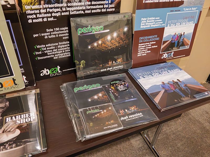 Come detto, l'etichetta varesina realizza anche vinili di pregio, come quelli che possiamo vedere in fotografia. One Shot Reunion dei Perigeo è un'edizione Plico speciale limitatissima per collezionisti, prodotta in sole 100 copie contenenti CD, Vinile, DVD, con la registrazione integrale del concerto e contenuti extra back stage. Un importante documento con dedica di Giovanni Tommaso e firma autografa di tutti i componenti della band. Non meno importante per gli appassionati è il Vinyl Limited Edition "Live in Italy - Peter Erskine & The DR.UM Band", la registrazione di un eccezionale concerto avvenuto in una speciale serata italiana durante un tour nel 2017. Anche questo LP 180 è in edizione limitata (500 copie numerate).