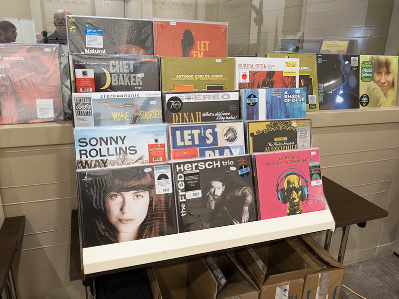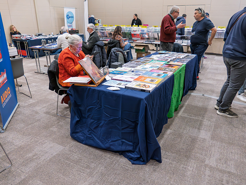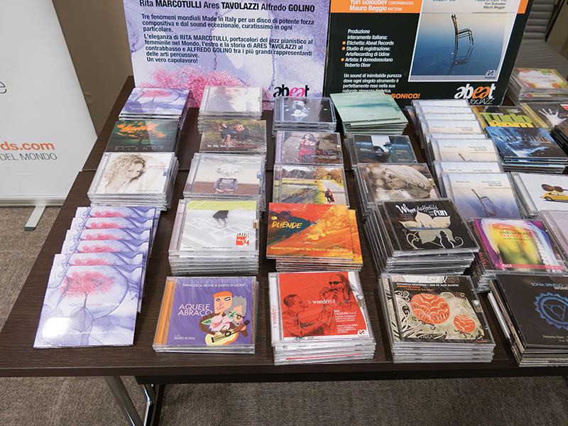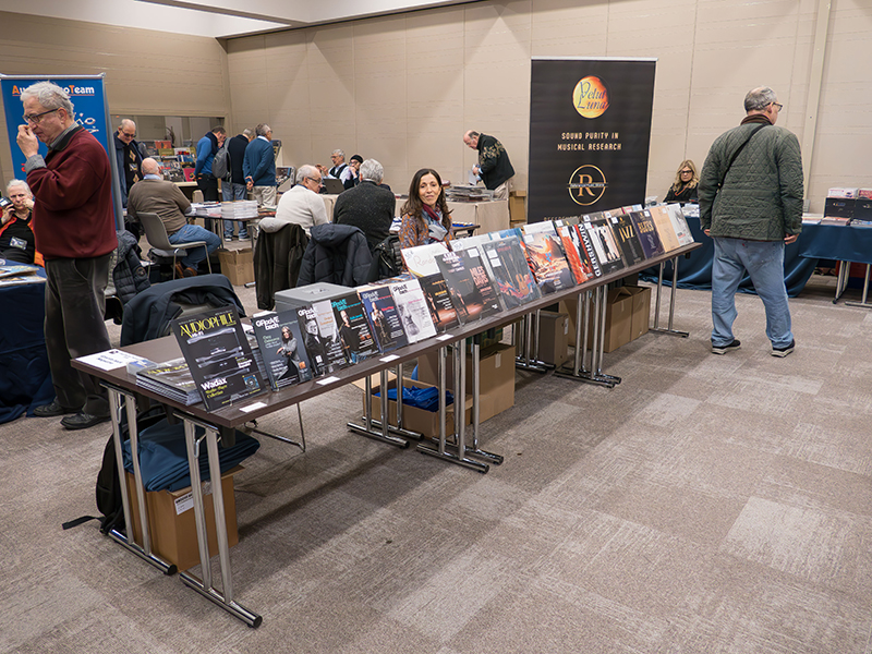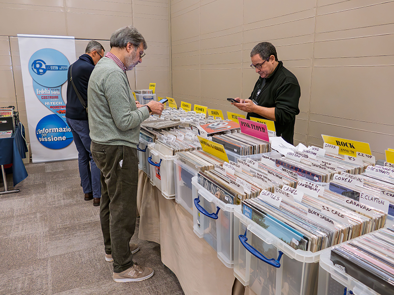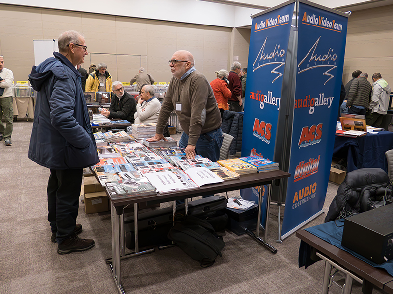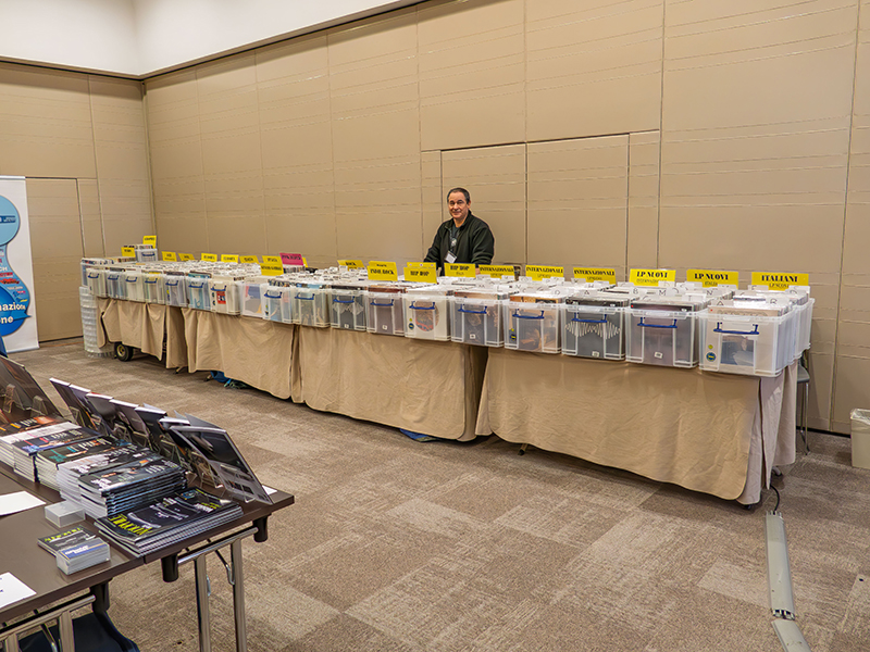 Molti vinili e qualche CD presso lo stand della Sound and Music, azienda italiana specializzata nella distribuzione di dischi audiophile e supporti musicali di alta qualità, focalizzata su vinili e formati digitali particolari come SACD, UHQCD, XRCD. Alfredo Gallacci è il suo fondatore e titolare.