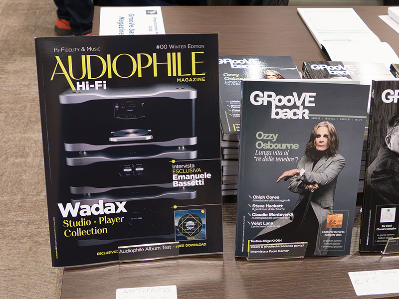 Nello spazio espositivo è stata annunciata una bella novità: la nascita della rivista Audiophile Hi-Fi, che esordisce con il numero #00 Winter Edition. Parliamo di una rivista specializzata in alta fedeltà e musica, disponibile per l'acquisto online tramite il sito di Reference Music Store. Io stesso mi onoro di essere stato chiamato a far parte della redazione.