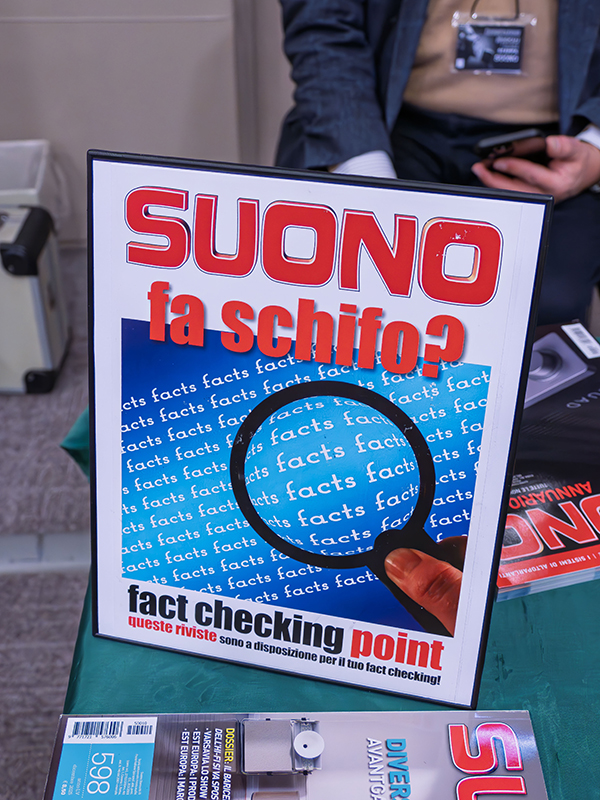 Sembra più simile a una boutade che a un interrogativo la frase "Suono fa schifo?". In realtà è un'iniziativa che ha riscosso un buon successo al Milano/Roma Hi-Fidelity, al Gran Galà dell'Alta Fedeltà e, credo, lo riscuoterà anche a quest'edizione di Degustazioni Musicali. In sintesi, questa campagna vuole sfidare le critiche dei lettori con un approccio basato sui fatti, il cosiddetto "fact checking". La rivista ribatte alle critiche sostenendo che provengono da chi non legge più la rivista o lo fa in modo superficiale.