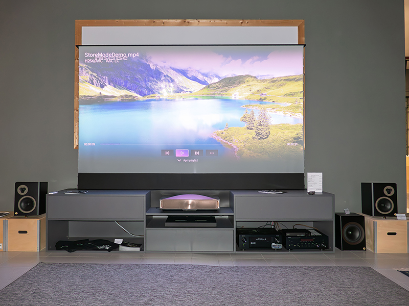 Con Hisense entra nel discorso un marchio importante nel campo degli schermi. È esordito in Cina nel 1970 con i primi TV in bianco e nero, poi allargatosi a livello globale con le acquisizioni strategiche di Sharp e Toshiba, nonché diverse altre collaborazioni, sino a diventare un leader mondiale noto per i suoi televisori a grande schermo e per le sue innovazioni, come la tecnologia OLED e QLED. In quest'avvincente serata del 29 novembre, nell'elegante sede del negozio Care Orchestra - Sartoria Acustica Italiana, Giuseppe Pellegrino ha dimostrato un signor impianto Home Cinema, formato dai diffusori Care Orchestra Celestial Deep Breath Evo, centrale Celestial Eye, subwoofer Earthquake 3.0 Slim, Seed Home Theater, cabinet laser TV Blackwall con schermo Care Orchestra Floor Rising, videoproiettore laser 4K UHD Hisense L9Q e sintoamplificatore A/V 9.2 canali Yamaha RX-A6A. Non sono un esperto di Home Cinema, ma già dalle prime immagini è stata evidente la vivezza, la ricchezza della gamma di colori e l'altissima risoluzione delle immagini che questo sistema era in grado di produrre, supportato per l'audio dagli eccellenti diffusori Care Orchestra pilotati dallo Yamaha RX-A6A.
