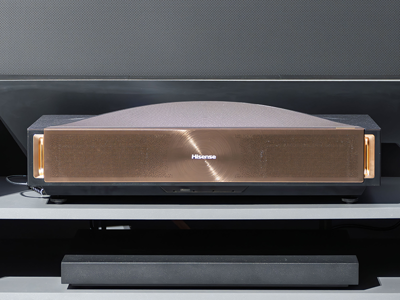 Attualmente invece c'è l'integrazione AirPlay, con la quale l'utente che ha sposato un sistema cellulare Apple può condividere i suoi contenuti sulla piattaforma Apple TV. In un tempio dell'audio come questo non poteva certo essere trascurata la sezione riguardante il suono, formata per la parte dei diffusori interamente da sistemi Care Orchestra, non un punto trascurabile perché tanta parte hanno avuto nel suscitare quella potente emozionalità caratteristica dell'Home Cinema. L'L9Q dal canto suo non lascia certo a desiderare per la sua sezione audio, implementando un sistema 6.2.2 sviluppato in collaborazione con il noto marchio francese Devialet. In questo modello ammiraglio è stato integrato un sintonizzatore digitale terrestre satellitare con la slot Common Interface e la certificazione TV SAT, strumento utile per chi volesse sostituire la televisione. È importante sapere che l'Hisense L9Q può essere tranquillamente utilizzato in condizioni di luce controllata, si può collocare quindi in un ambiente luminoso, però con l'accortezza di avere una tenda o altro dispositivo che impedisca l'accesso della luce diretta del sole. Gestisce ovviamente il formato 4K, oggi presente anche su qualsiasi modello d'ingresso, e il triplo laser RGB, con tre raggi ben distinti (rosso, verde e blu) che compongono l'immagine.