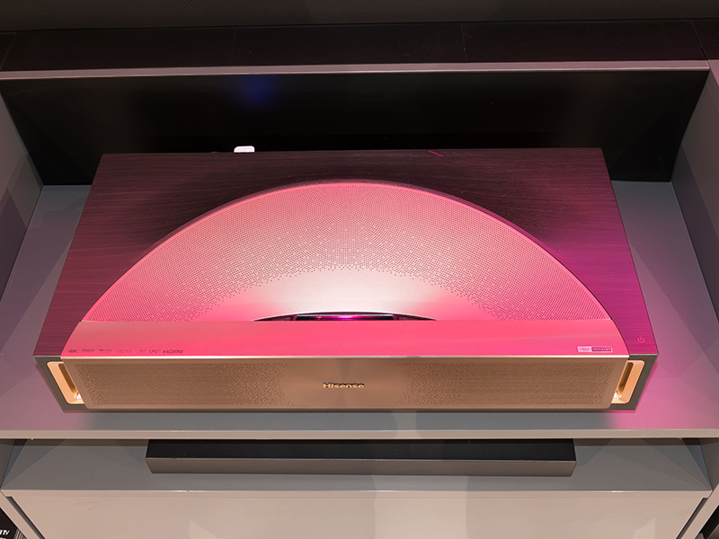 Non è una novità la Hisense in Italia, da noi insediatasi dodici anni or sono, produttrice di molteplici tipologie di oggetti gravitanti intorno all'elettronica di consumo e agli elettrodomestici, parliamo di televisori, frigoriferi, congelatori, condizionatori, lavastoviglie, lavatrici, forni, e anche prodotti di comunicazione mobile come gli smartphone. Un ambito elettronico praticamente sconfinato, ma è in quello della videoproiezione che negli ultimi sei mesi si è verificata una discreta ascesa. Nel nostro Paese, non tutti lo sanno (e a Giuseppe Pellegrino non è consentito rivelarlo), queste macchine non solo vengono prodotte in proprio, ma anche per altri brand, alcuni anche un po' più blasonati di Hisense. Appuntamento particolarmente importante quello di stasera a Bollate, visto che per la prima volta viene presentato in Italia, presso un rivenditore, il nuovo nato Hisense L9Q, top di gamma arrivato da noi qualche settimana fa. Il suo aspetto è decisamente bello ed elegante (nella speranza che le mie foto gli rendano onore), con una colorazione che richiama un noto marchio di telefonia. Questo nuovo oggetto è stato studiato in maniera migliorativa rispetto a tutto quanto proposto in precedenza.