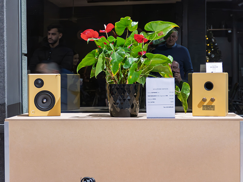 Ognuno insomma fa la sua parte. "In questi ultimi due anni", dichiara Mario Garavaglia "sono un po' sparito dalle fiere perché della commercializzazione si occupa il gruppo di Care Orchestra, mentre noi utilizziamo altri canali. Vendiamo tantissimo nel settore del lusso e dell'architettura." Esclusa dunque la partecipazione alle mostre audio perché il cliente d'elezione del marchio non è un vero e proprio audiofilo, ovverosia non solo, ma una persona dai gusti molto raffinati, appassionato di arte e in possesso di una buona disponibilità economica. Persone comunque molto facoltose che si muovono in altri settori, estranei a quello dell'Hi-End. Lo stesso Mario ora ha imparato a frequentare un mondo completamente differente da quello di prima, ora il suo cliente tipo si siede, ascolta e, se l'oggetto è di suo gradimento, lo compra senza fare domande, senza chiedere che altoparlanti monta o altri particolari.
