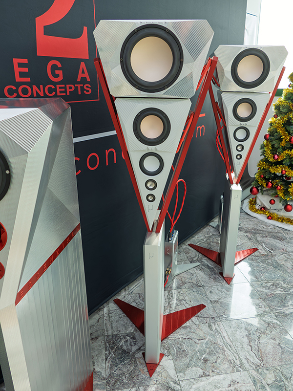 Così anche nel M.U.S.A., imponente e pesante sistema che ho ascoltato con molta attenzione nel corso della dimostrazione in Sala Palladio. È l'ultimo diffusore realizzato da Omega Audio Concepts, destinato ad ambienti mediograndi. Duplice il significato del nome, inteso come figura mitologica e come acronimo di Music Under Silence Accomplishment, ovvero musica tramite la realizzazione del silenzio, intesa come mancanza d'intromissione o di modifica delle informazioni lette dalla sorgente. Sanissimo principio piuttosto difficile però ad adempiersi. In questo rivediamo dunque i ponderosi blocchi di alluminio ricavati dal pieno, con spessori che qui vanno dai 50 mm ai 20 mm. Chi ne capisce un po' di elettroacustica sa quanto siano deleteri i fenomeni di Break-Up di membrana, che il marchio combatte con un opportuno filtraggio e l'adozione di altoparlanti a calotta sferica, formata da una lega di magnesio/alluminio e titanio per il tweeter. Il piedistallo dal canto suo disaccoppia il diffusore dal pavimento mediante dei piedi antivibrazioni. Il Micro XL, infine, si fa notare per quell'eclettismo che deriva dall'implementazione di tutte le soluzioni presenti negli altri diffusori della produzione.