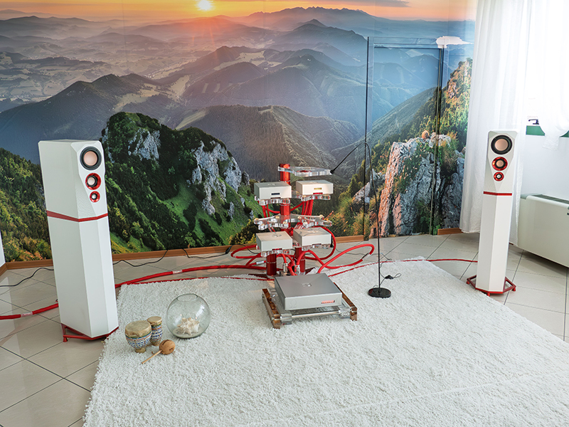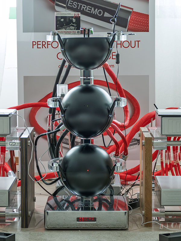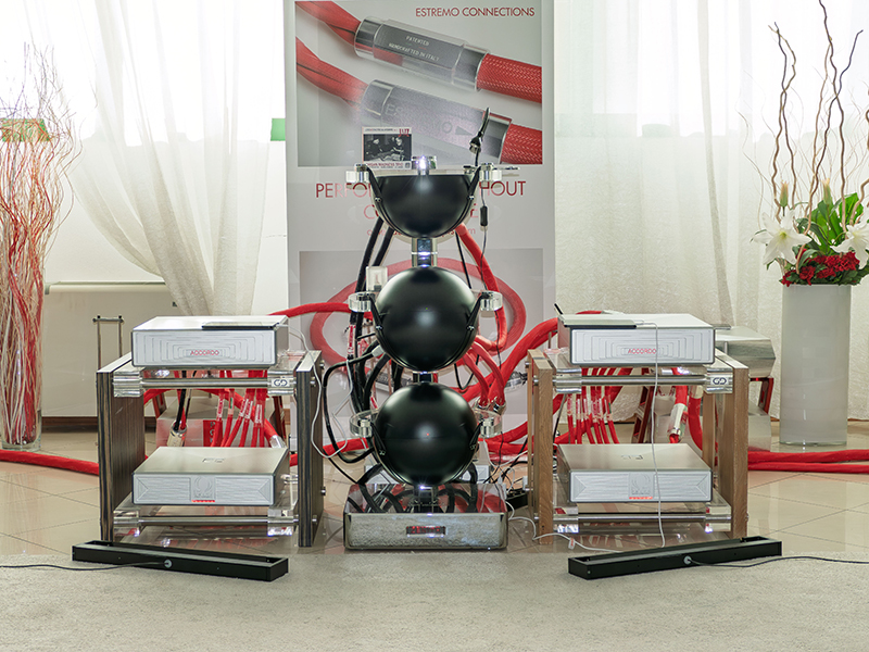 Lettore CD Zenith, amplificatore integrato mono Accordo, amplificatore integrato mono Stream Power, diffusori M.U.S.A., distributore di rete e cablaggi Estremo.