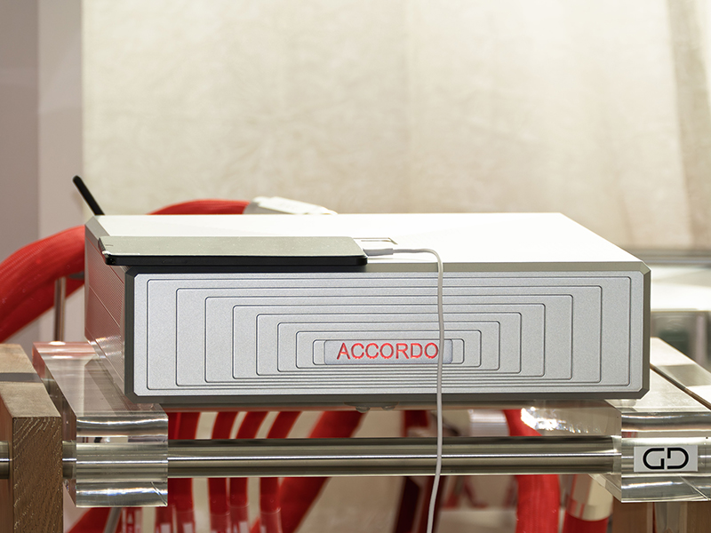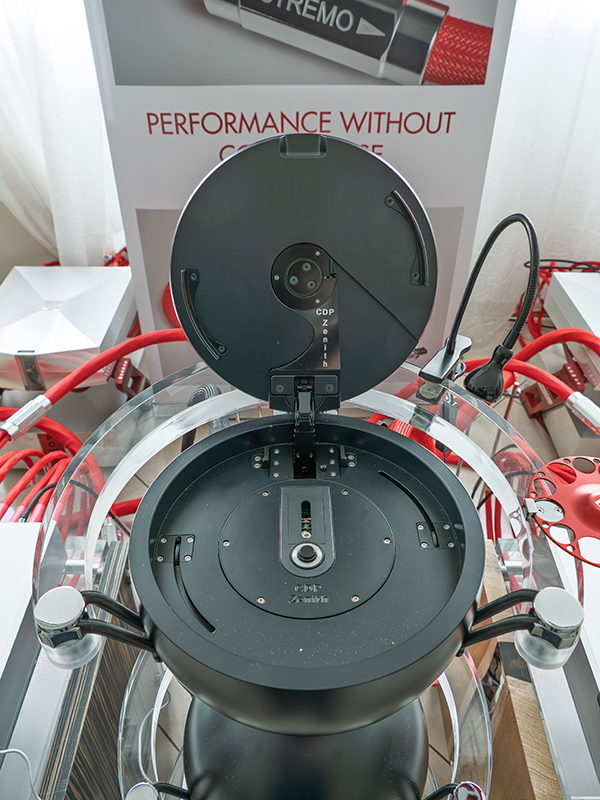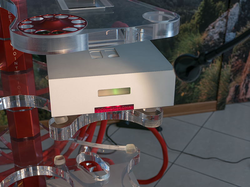 In questa due giorni è stato fatto ascoltare il lettore CD DNA utilizzando il clamp piccolo e quello grande, in modo tale da far avvertire le variazioni del suono nelle due opzioni. Con il più grande il silenzio è aumentato perché il dischetto stava più fermo, quindi venivano generati meno errori di lettura e meno oscillazioni sulle parti dove erano riprodotti dei trilli, che così si sentivano più distinti e puliti. Immaginiamo allora cosa succede a un CD messo nel cassettino senza alcun sistema di bloccaggio, è ovvio che sfarfallerà nei suoi movimenti, innescando delle sensibili vibrazioni che andranno a compromettere la lettura. Con cosa vengono accordati gli strumenti musicali? Con il diapason, che è uno strumento in metallo a forma di forcella che emette un preciso suono. Va da sé che un oggetto costruito per riprodurre al musica, dei suoni, non deve a sua volta vibrare per non mascherare o inquinare il segnale che gli viene somministrato. Una filosofia chiara, che non lascia adito a dubbi, sostanziata nell'attuale produzione di sorgenti, amplificatori, diffusori, sistemi di connessione e distributori di rete.