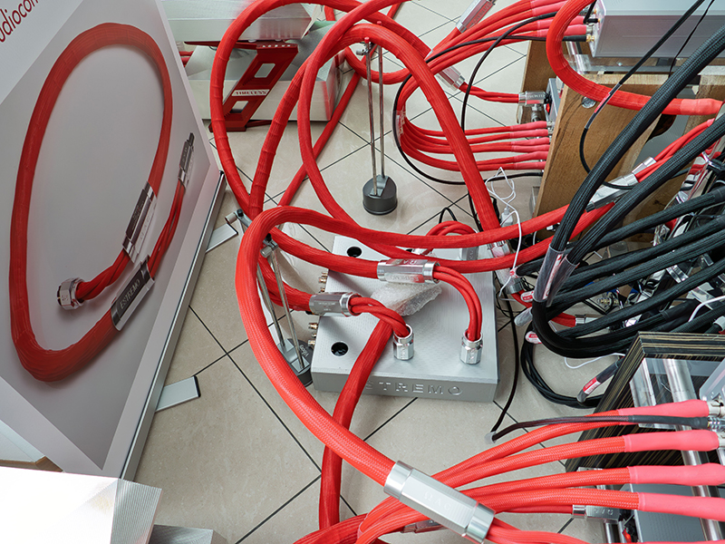 In questa disamina non dobbiamo trascurare i sistemi di connessione, disponibili in cinque livelli diversi per materiali usati, sezione e avvolgimento dei conduttori, dimensione complessiva e quantità dell'isolamento, con una complessità costruttiva che aumenta parallelamente con il livello delle prestazioni. Vengono tutti realizzati completamente a mano partendo dal singolo conduttore "solid core", al quale vengono poi applicati isolamento e i vari strati di schermatura, a seconda della classe di appartenenza.