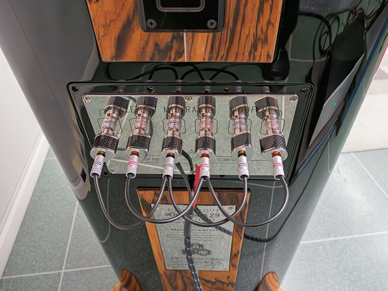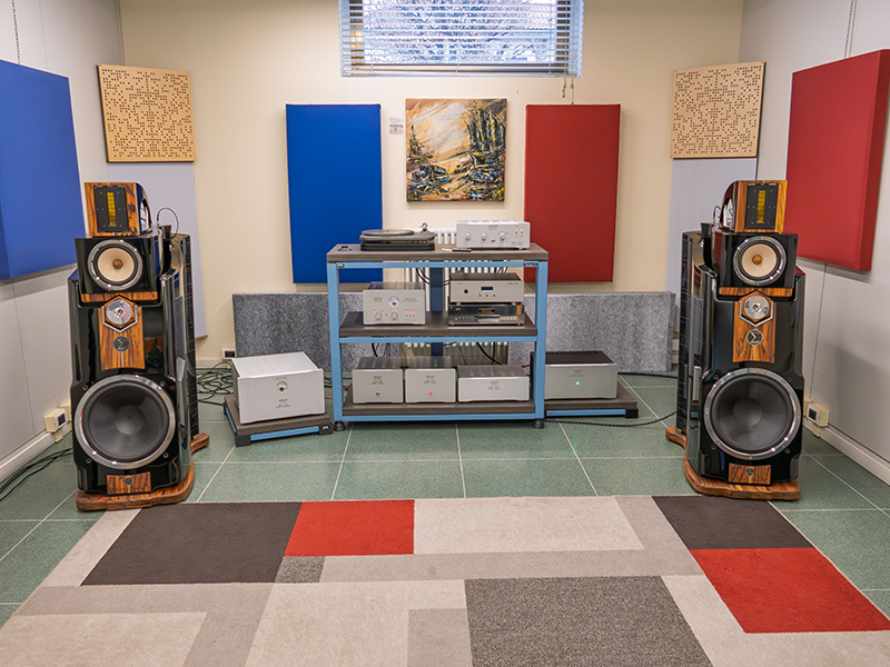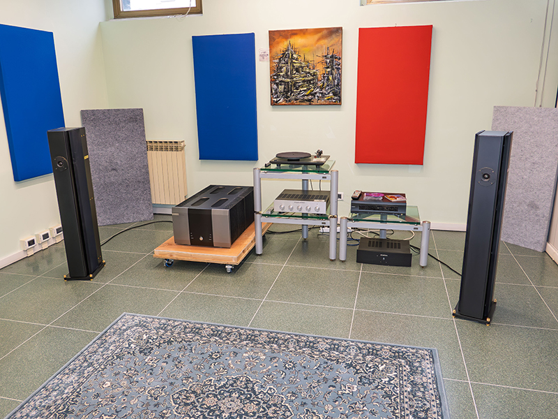 Saverio mi accompagna nella sala principale del suo negozio, quella di cui lui è giustamente più orgoglioso. Qui c'è un concentrato di quanto di meglio è presente nel negozio cogliatese, a iniziare dalle sontuose e sofisticate Sigma Acoustic Orchestra 2.9 nella versione speciale "Limited Edition". Un sistema cresciuto con l'obiettivo di accordare al massimo livello ogni gamma di frequenza dello spettro udibile. Partendo dal midrange da 22 cm, un componente fondamentale vista l'estrema sensibilità dell'orecchio umano alle frequenze medie, questo utilizza un cono in fibra di carta di papiro (Cyperus Papyrus), mosso da un potente motore con magnete in Alnico. Ad accoglierlo in un cabinet separato è un mobile molto sofisticato, oltre che bello, con tecnologia brevettata SCV (Structure-Coupled-Vibration), atta a eliminare le risonanze, garantendo precisione e dinamica. Non solo al medio è stato dedicato un volume separato, ma tre sono i cabinet indipendenti. Il caricamento di questo imponente tre vie è in Bass Reflex, risponde in frequenza da 19 Hz a 30.000 Hz. Molto elevata la sensibilità, pari a 95 dB/2,83 V/1 m, impedenza nominale 8 Ohm (minimo 6 Ohm). Tutti di altissimo livello i componenti.