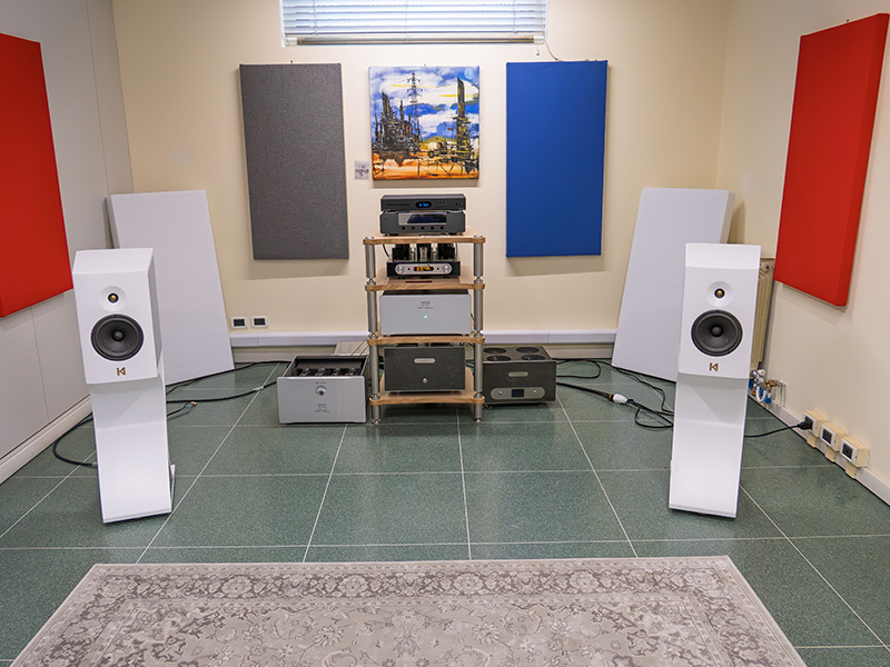 Meccanica di lettura CD Audiolab 6000CDT, preamplificatore/DAC Abbingdon Music Research Digital Processor DP-777, preamplificatore Digital/Analogico CanEVER ZeroUno Plus Ultra, amplificatore finale di potenza stereo Vexo S30, amplificatore finale di potenza stereo CanEVER Malibran Tesla, diffusori Kroma Audio Atelier Julieta, Vexo Power Conditioner.