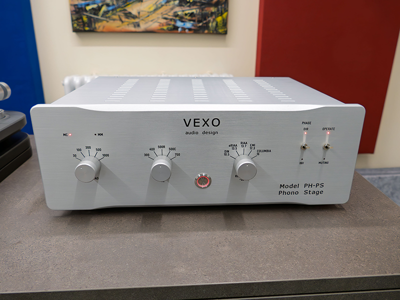 Negli ultimi anni, dopo l'acquisizione della Vexo da parte di Saverio Corasaniti, il rilascio di altri due prodotti, il Power-Bank, condizionatore di rete ad alte prestazioni, e il preamplificatore Phono PH-PS, è andato a infoltire un catalogo prodotti composto dal preamplificatore linea LP-PS, amplificatore per cuffia VX ATT.01.01 e gli amplificatore finali di potenza stereo S20, S30 ed S40. Questi ultimi erogano le potenze crescenti di 15 Watt, 25 Watt e 50 Watt per canale. Ritornando a bomba alle due novità, il filtro di rete vanta a oggi due recensioni, una da parte della rivista Suono e l'altra stilata da Angelo Jasparro di Audio Activity. Il Power Conditioner stabilisce una perfetta continuità qualitativa con la pregressa produzione, progettato quasi parallelamente al preamplificatore Phono, che è l'ultimo nato in casa Vexo. Parliamo di un pregevole oggetto a doppio telaio con alimentazione separata di tipo induttivo (tutte le apparecchiature prodotte dal marchio hanno lo stadio di alimentazione separato). Stessa filosofia progettuale segue anche il preamplificatore Phono, a tutto vantaggio della silenziosità, cosa particolarmente importante da conseguire su un preamplificatore Phono a causa dell'esiguità del segnale da trattare. Si viaggia nel critico territorio di tensioni che vanno da pochissimi mV per le MM a frazioni di mV per le MC. Sono valori che spesso e volentieri comportano dei problemi in oggetti di questo tipo, contraddistinti da guadagni molto alti. Sappiamo bene che in questi basta un niente per innescare dei rumori che poi vengono amplificati dalla catena, un ottimo motivo per prestare particolare cura all'alimentazione, proprio come Vexo fa senza lesinare sul livello della componentistica. Parliamo di una macchina completamente bilanciata, che però dispone d'ingressi anche sbilanciati, con un guadagno in modalità MC di 72 dB e di 52 dB in MM.