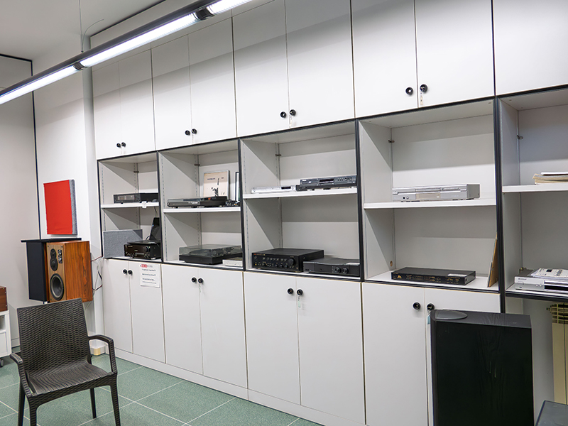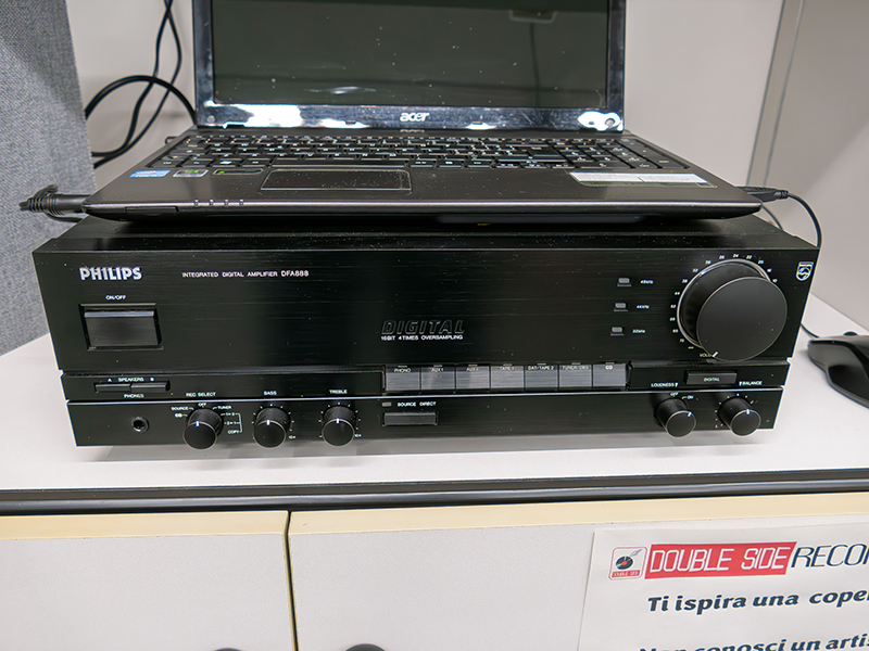 Queste cose di "crossover" piacciono molto a Lorenzo. C'è dunque l'ambizione di conquistarsi una posizione culturalmente rilevante, incarnata in quest'aspirazione a fare dei piccoli eventi, sempre incardinati alla musica, dove vengono presentate delle opere di arte visiva, libri e nuove uscite discografiche. C'è insomma il manifesto obiettivo di far diventare questo posto anche un polo attrattivo intellettuale e non solo un riferimento per chi vuol comprare un disco o un oggetto HiFi. In Saverio Corasaniti la passione per l'audio è iniziata da quando è nato, lui che ha sempre vissuto immerso nella musica. Suo padre era un fervente cultore che ascoltava la musica su un bellissimo impianto Telefunken. Saverio se lo ricorda ancora, era un mobile che si apriva e veniva fuori il giradischi, mentre sopra c'era la radio, entrambi amplificati dalla medesima elettronica. Al godimento della musica si aggiungeva il piacere di bere, magari mentre la si ascoltava, un buon bicchierino di liquore. All'interno del mobile c'era infatti anche un piccolo vano bar con delle bottiglie. Lo ricorda con sincera commozione, all'epoca visto da lui come una vera opera d'arte, a partire dal bel mobile di legno. La narrazione di Saverio porta alla luce dei sentimenti la cui freschezza, smalto e convinzione appaiono ancora oggi intatti. All'età di dieci anni, mosso da curiosità, iniziò a smontare quest'antenato del moderno "All-in-one", voleva capire com'era fatto e cosa nascondesse al suo interno.