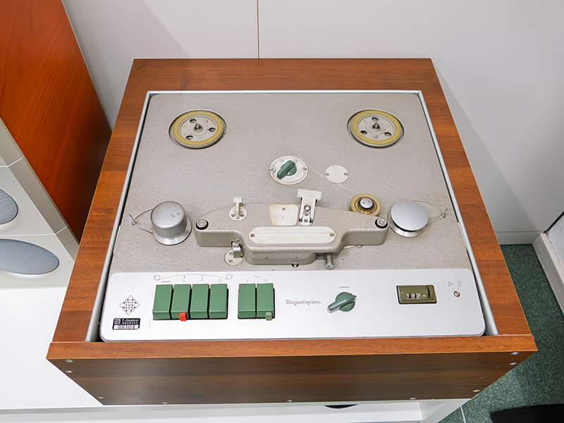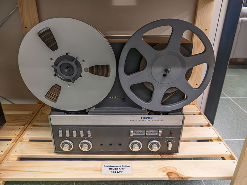 Diffusori Paolo Beduschi Scarlatti e registratore a bobine Telefunken Magnetophon.