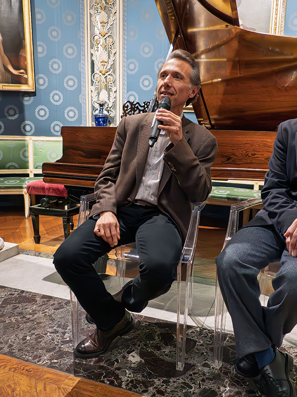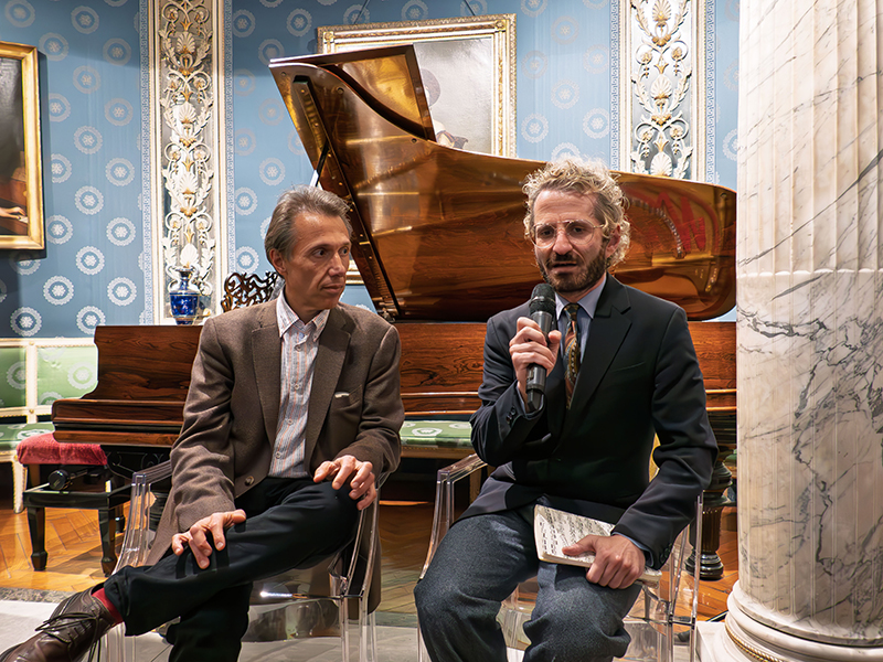 La sua ampia discografia lo testimonia, spaziando da D. Scarlatti, J.S. Bach, F. Busoni sino alla contemporaneità. Un universo sfaccettato il suo, espresso anche in album come "Heroica", al centro dell'attenzione di questa serata milanese, un macrocosmo colto e allo stesso tempo teso a captare lo spirito dei tempi. Alla stregua del precedente "Nature & Life" è un "concept album", che ruota intorno all'idea non della natura ma dell'eroismo, scandagliato attraverso i brani di diversi compositori. Quello dell'eroismo è forse un concetto oggi delicato da affrontare poiché la parola eroe può suscitare delle immagini bellicose, di guerra. In realtà nel nostro disco questo si lega anche alla fragilità, all'idea di trasformazione dell'identità che riconosciamo nell'artista temporalmente più vicino a noi, David Bowie, presente nel disco con tre notissime canzoni. Non solo nella celeberrima Heroes, ma anche nelle altre due c'è il riferimento a un concetto di eroismo diverso dall'accezione di battagliero. Maurizio Baglini con un po' di timore reverenziale si accinge a parlare di album a tema, che molto poco si confà a un tempio museale come quello in cui ci troviamo. Siamo infatti calati nell'atmosfera del teatro più famoso del mondo, emblema della musica classica, nel senso più tradizionale del termine. Ma perché un genere che brilla di luce propria deve adattarsi a un termine preso in prestito dal rock progressive?