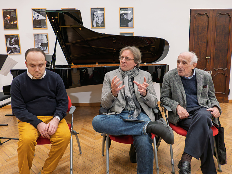 Sarebbe a questo punto desiderabile sapere se e come si è evoluto il dialogo musicale tra Canino e Bidoli nel corso di questa ultradecennale collaborazione e quale sia la qualità che ritengono più preziosa per poter lavorare in buona sintonia. A riguardo Canino rammenta di aver eseguito la Sonata Op. 108, il cui finale abbiamo sentito dal duo in serata, in una settimana con tre diversi violinisti. Si tratta allora d'intuire, in un rapporto di amicizia, quali siano le capacità dell'altro interprete, le cose belle e quelle dalle quali si può ricevere un qualcosa di fruttuoso. Si verifica in buona sostanza uno scambio che si compie non parlando, ma suonando. Queste sonate hanno avuto man mano un'evoluzione nella mente di chi le esegue. "Mi considero un funzionario della musica" dice Canino, "non pretendo di essere un creatore ma cerco di fare in modo che questo rapporto d'interscambio e amicizia emerga, altrimenti non vale la pena suonare insieme." Alessio Bidoli ricorda con emozione la prima volta che è entrato in casa di Bruno Canino, fu per lui un vero onore. All'inizio il loro rapporto era sbilanciato, come può esserlo quello di un ventitreenne che incontra un grande maestro settantaquattrenne, uno squilibrio che tuttavia non si è mai manifestato all'atto dell'esecuzione.
